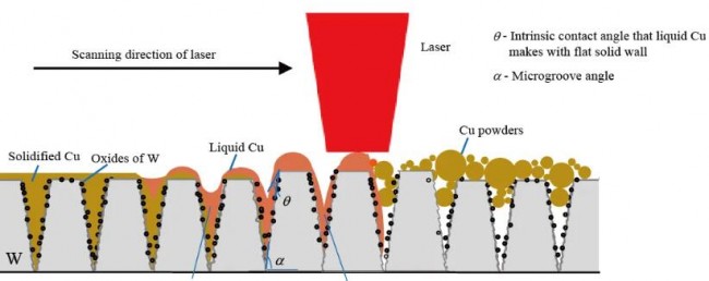 ▲圖3:鎢表面激光織構(gòu)化對(duì)于銅增材過(guò)程調(diào)控