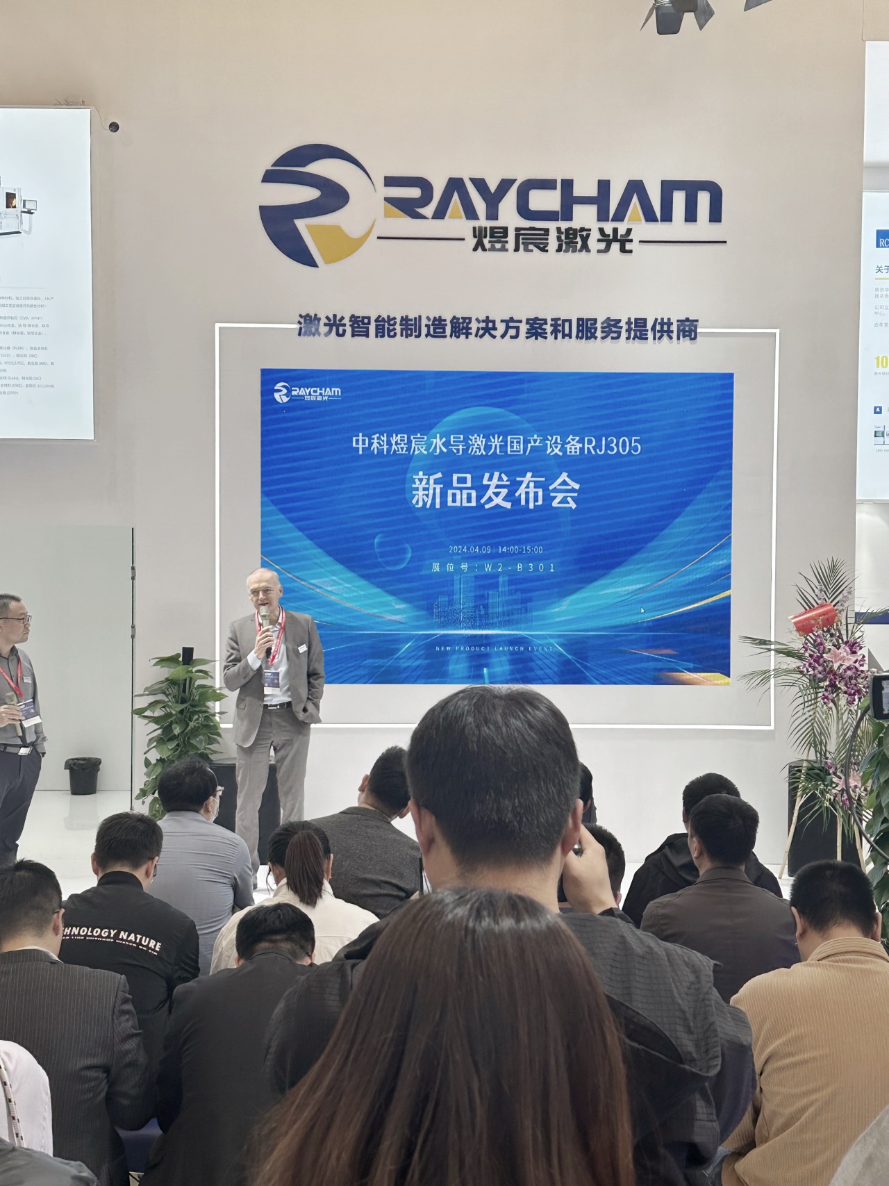 精彩紛呈的新品發布會上,中科煜宸鎖紅波先生介紹了RJ305的外觀性能并現場演示了設備加工過程。中科煜宸董事長邢飛先生、瑞士Synova創始人Bernold Richerzhagen先生先后致辭,將發布會氣氛推向高潮。